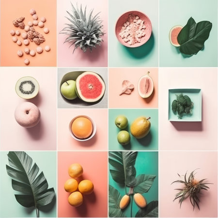 Collage of Tropical Fruits and Flowers - Nature's Palette