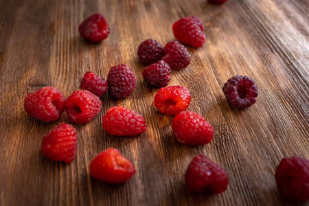 Fresh and sweet raspberry in a dark background. Selective focus.