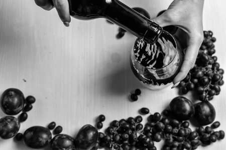 Pouring red wine in a glass, celebration of a moment with a glass of wine, exquisite liquor for gourmets, winery