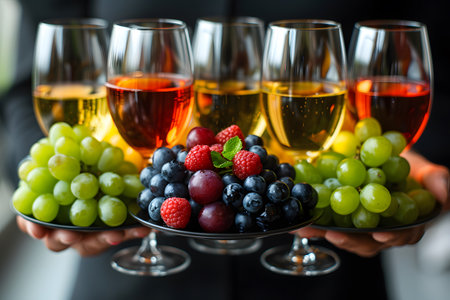 Elegant Wine Glasses and Fresh Fruit Platter in Hand