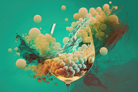 Artistic composition featuring a wine glass filled with multicolored grapes, emphasizing texture and richness on a dark background.