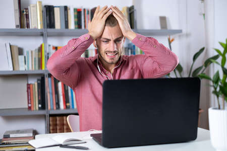 A picture of depress man. Depress and frustation of current situation. Covid impact on economy, society and psychology.