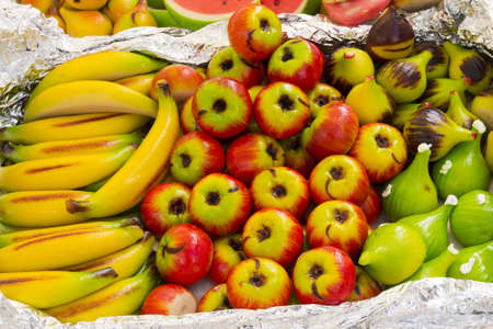 colorful fruit glazed, cherry, pumpkin, pear, plum and orange