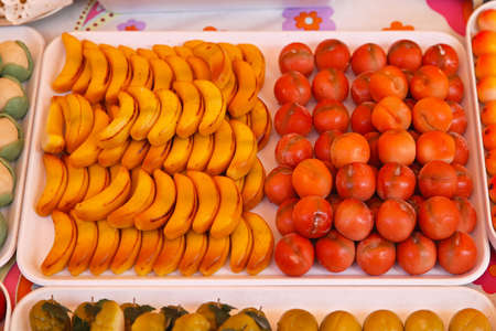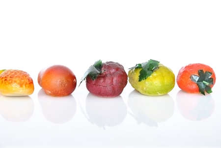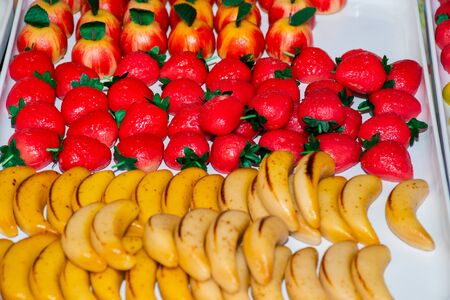 Deletable Imitation Fruits, Kanom Look Choup ,Thai desserts and snacks Canape, sweet bean food