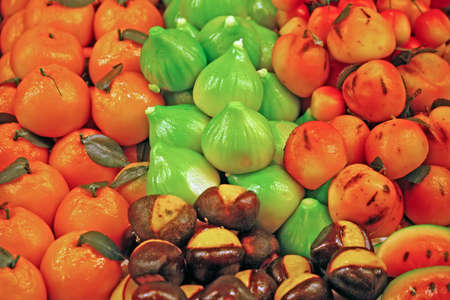 oranges figs chestnuts and other colorful marzipan fruits and vegetables