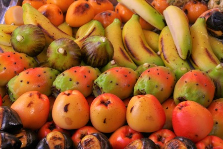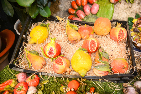 Marzipan sweets, chestnut, prickly pear, tomato, medlar