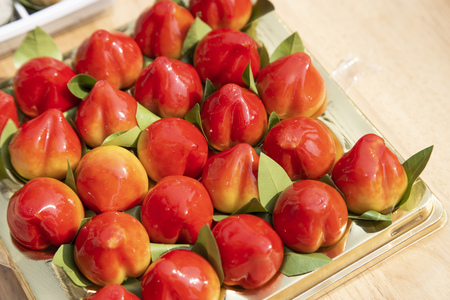 Peach shaped mung beans of Thai dessert (Kanom look choup)
