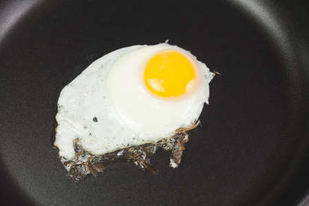 Fried egg in a frying pan, top view