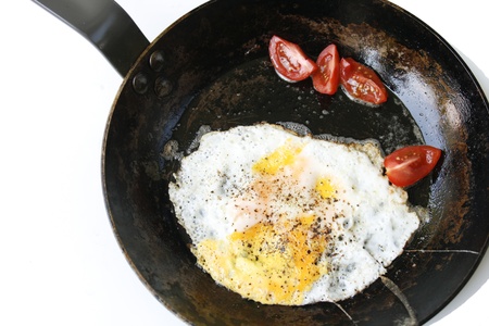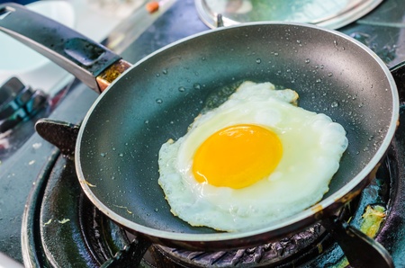 fried egg on a frying pan