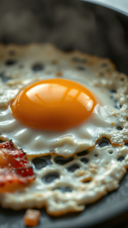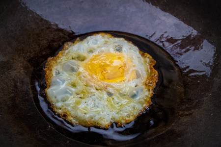 Food photography closeup photo of bullseye egg fried in a pan