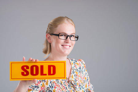 Realtor Businesswoman with Sold Sign
