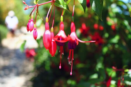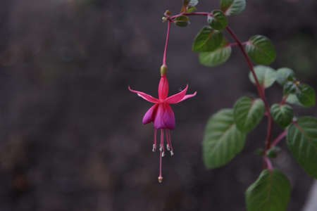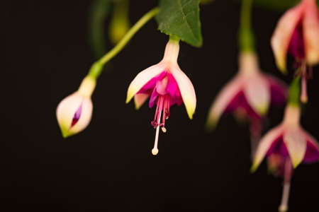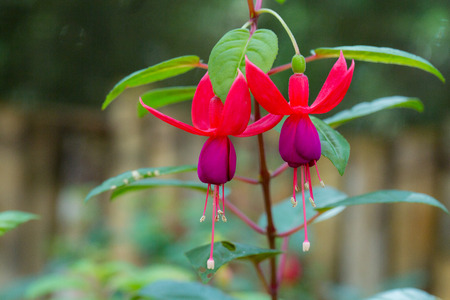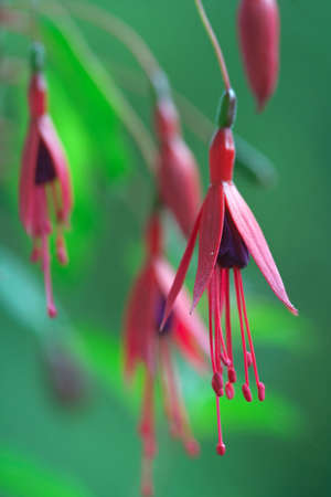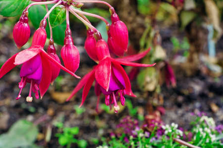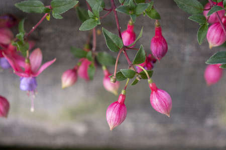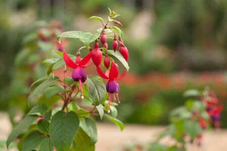 Fuchsia flowers in the garden, selective focus, shallow DOF.