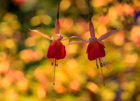 Lovely Fuchsia(Lady’s Eardrops) flowers with multicolor bokeh.