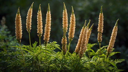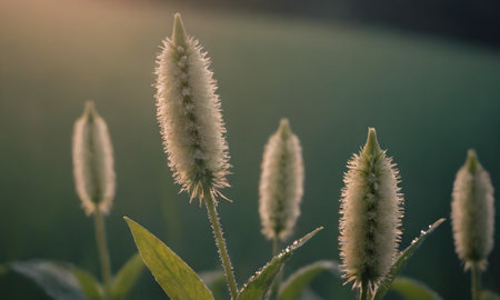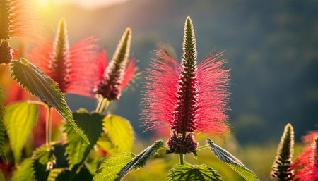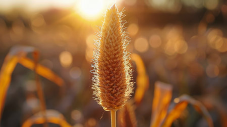 Warm sunlight illuminating foxtail amaranth during a stunning summer sunset, creating a captivating and vibrant natural background filled with golden hues and serene beauty
