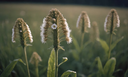 Close up view of a few wild grass pods. Illumination from the afternoon sun gives highlight to the brush like pods. Taken on the way to the beach at Cape Liptrap Coastal Park in Venus Bay, VIC