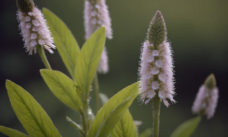 Captivating close-up of delicate pink flowering plants showcasing soft textures against a blurred green background, evoking a sense of natural beauty.