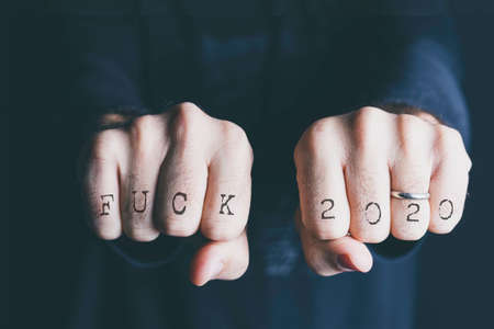 ACAB tattoo on the arm of a bully man. Black and white photo