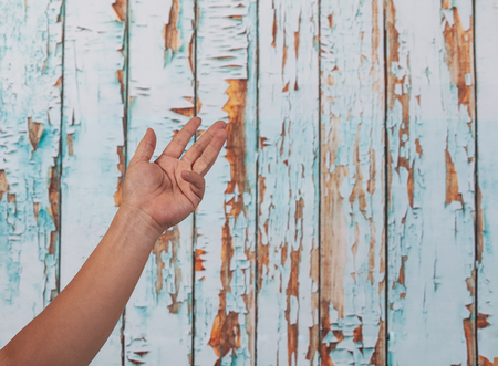 The Asian man hand in the gel color light Photography.