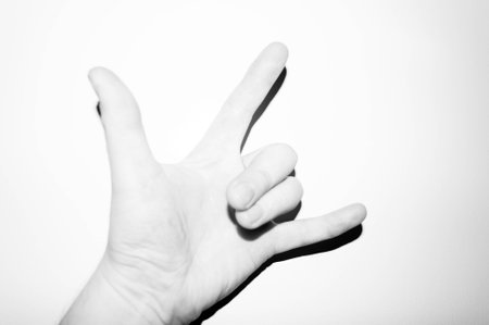 Love hand sign on white background