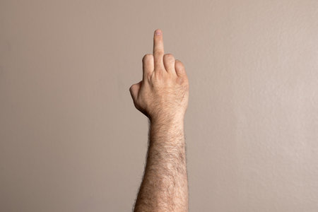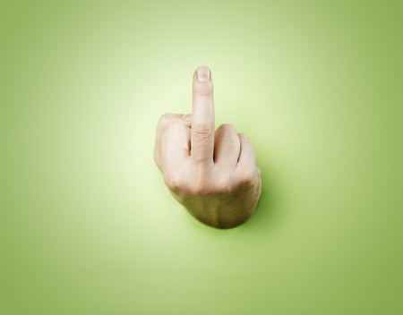 Middle finger, offensive gesture. Fuck you concept.