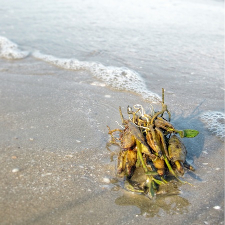 Seaweed on the shore of the Baltic Sea. Selective focus.