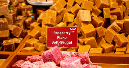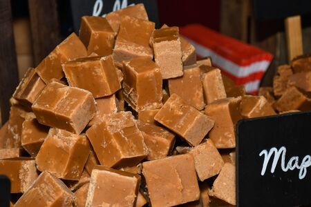 Traditional British Fudge on sale at a confectionary stall in London's Borough Market, UK