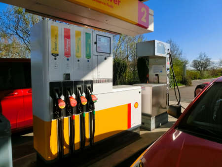 Dresden, Germany - April 18, 2022: Oil nozzle at the petrol station