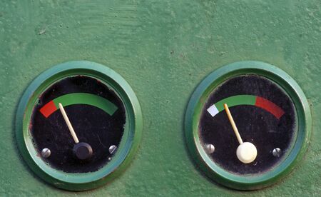 Two gauge meters on dashboard of vintage machine