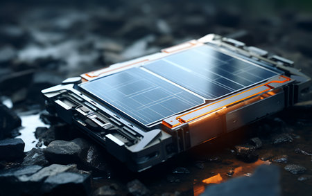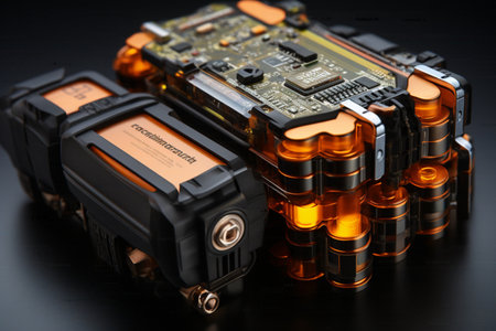 macro shot of rechargeable batteries, created with generative ai