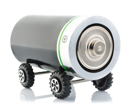 Car battery on a white background. 3d rendering. Computer digital drawing.