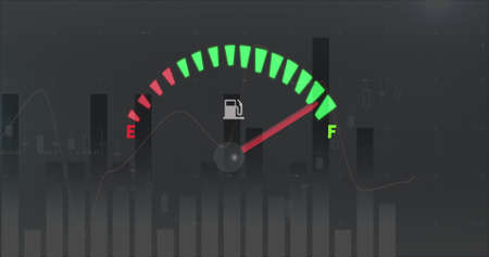 Fuel gauge with red indicator at empty level.Close-up car dash board petrol meter, fuel gauge, with over full gasoline in car. Clip.Gasoline sensor
