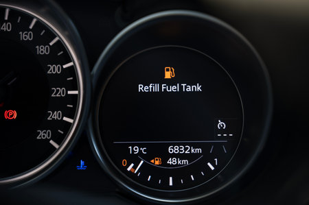Refill Fuel Tank Light Warning Sign Digital Indicator on Cars Board Computer