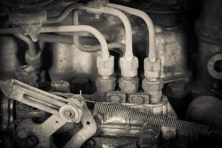 Old high-pressure diesel pump. The shallow depth of the sharply depicted space