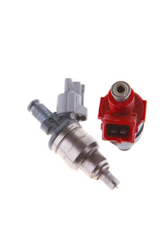 Old Gasoline injector part for car in engine system in white background