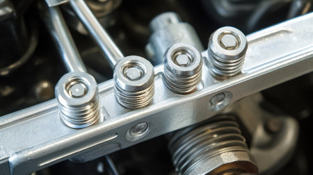 engine closeup parts, valves, bolts
