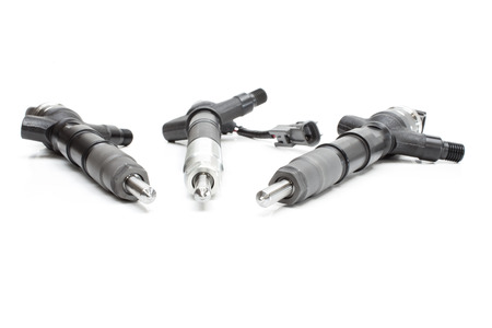 New injector for the diesel engine on a white background. Spare parts for the car.