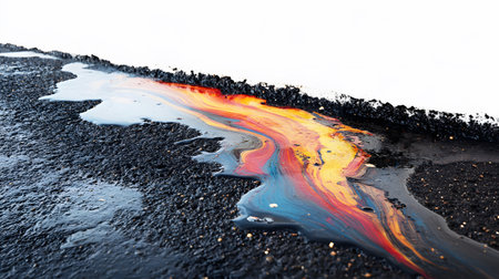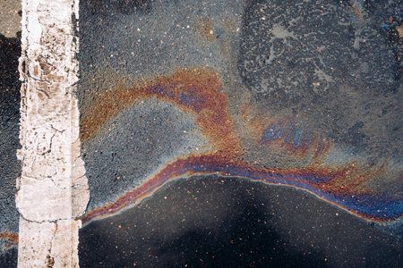 Vibrant Colored Gasoline Spots on Asphalt, Stunning Oil Stain Detail for Urban Textures