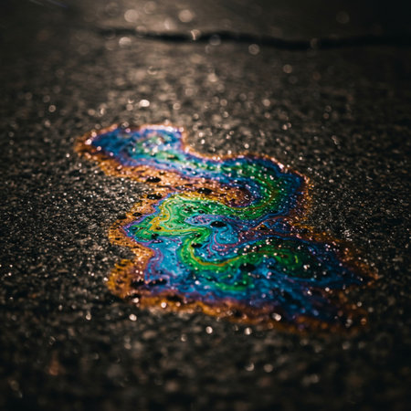iridescent oil spill on asphalt