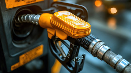 close up pump nozzle at gas station Generative AI