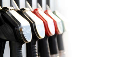 Gas station. Colorful Petrol pump filling nozzles.