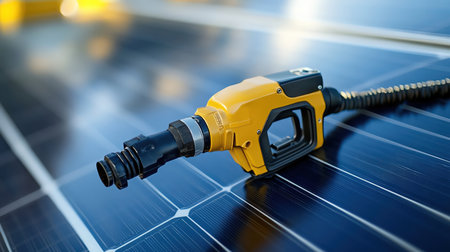 Gas nozzle connected to solar panel hose