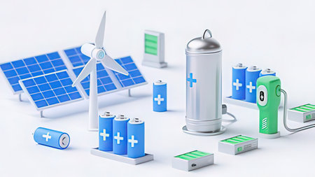 macro shot of rechargeable batteries, created with generative ai