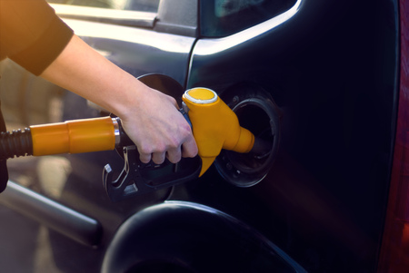refueling gun in the gas tank of the car