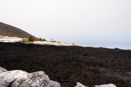 Solidified volcanic lava stream from the Cumbre Vieja volcano on the island of La Palma
