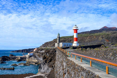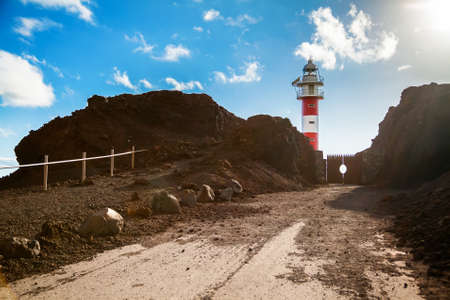 Lighthouse in Fuencaliente, La Palma island, Canary, Spain in sunny day