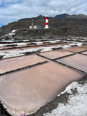 Salt extraction plant with lighthouse at salinas La Palma - Canary islands.