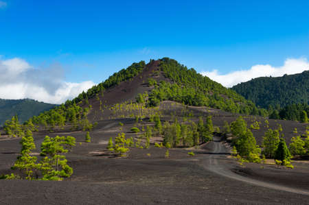 Beautiful lava landscape on the Cumbre Nueva in La Palma, Canary islands, Spain