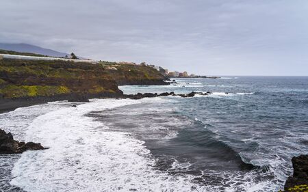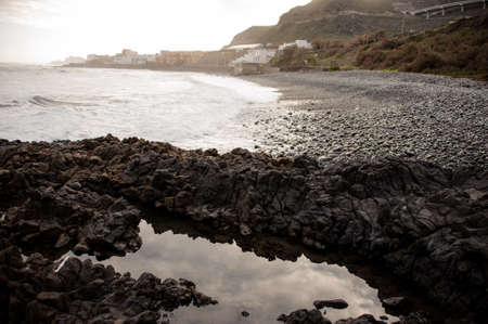 A powerful storm in the Atlantic Ocean in a bay on the coast of Tenerife. Northern Canary Island, Cape Charco De La Laja