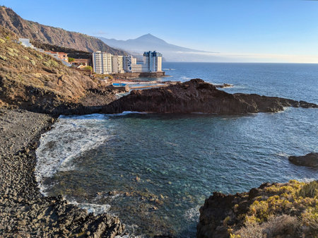 Mesa del Mar village and Teide volcano in background, Tenerife, Canary Islands, Spain