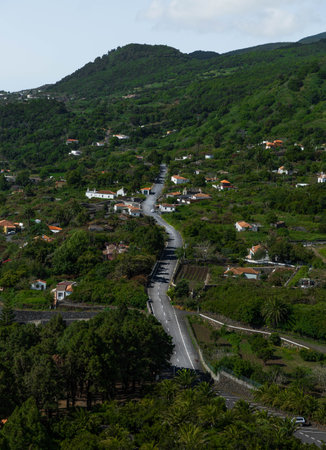 Aerial view on road with cars in East End of Tenerife, Spain